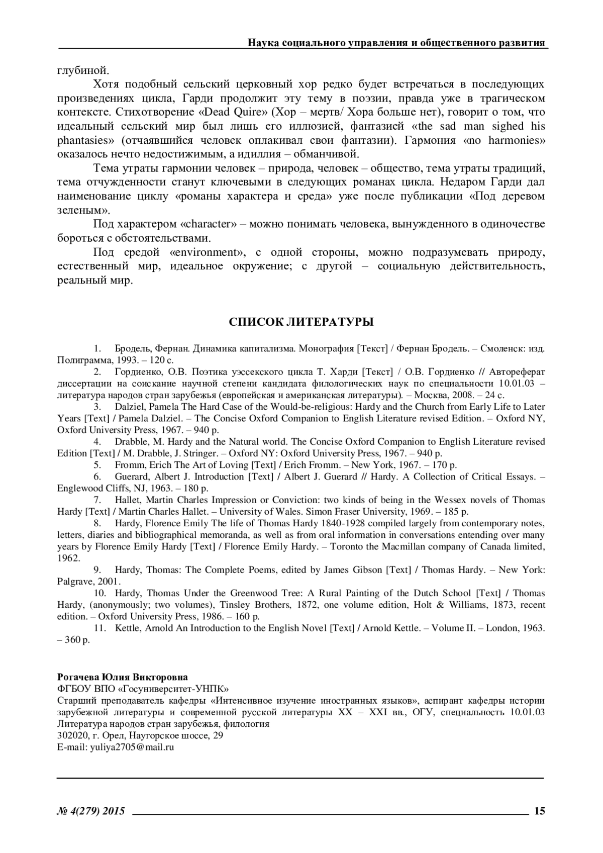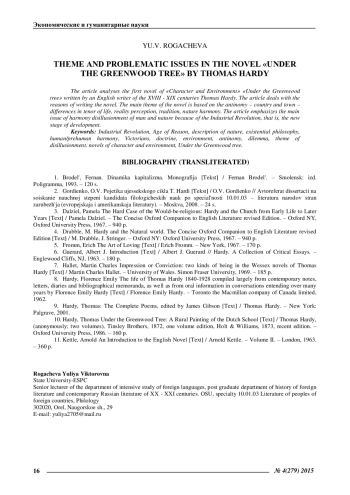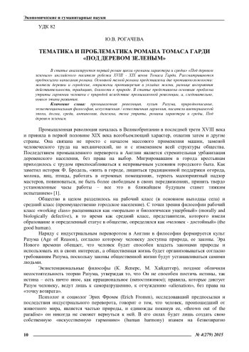 РОГАЧЕВА Ю. В. ТЕМАТИКА И ПРОБЛЕМАТИКА РОМАНА ТОМАСА ГАРДИ"ПОД ДЕРЕВОМ ЗЕЛЕНЫМ" // ЭКОНОМИЧЕСКИЕ И ГУМАНИТАРНЫЕ НАУКИ. 2015. № 4 (279)