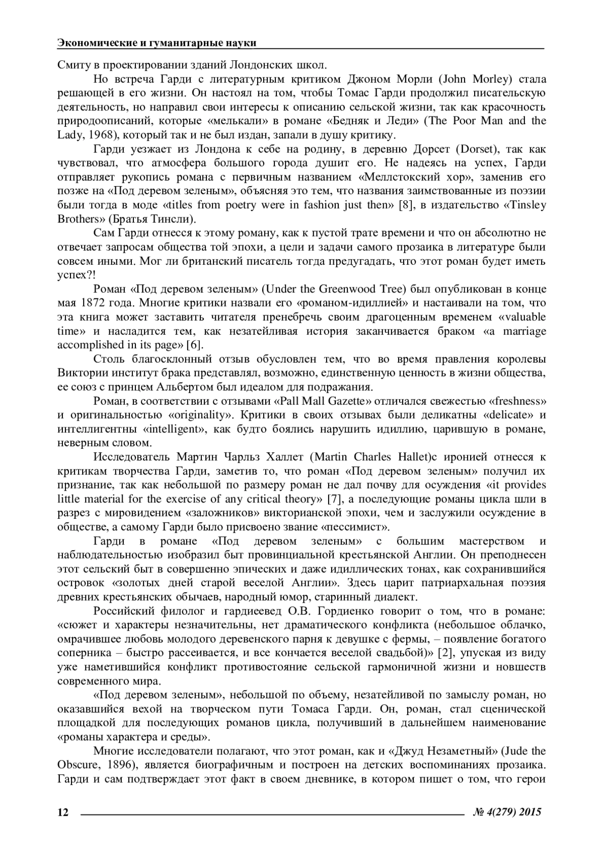 Статья: ТЕМАТИКА И ПРОБЛЕМАТИКА РОМАНА ТОМАСА ГАРДИ"ПОД ДЕРЕВОМ ЗЕЛЕНЫМ" (2015)