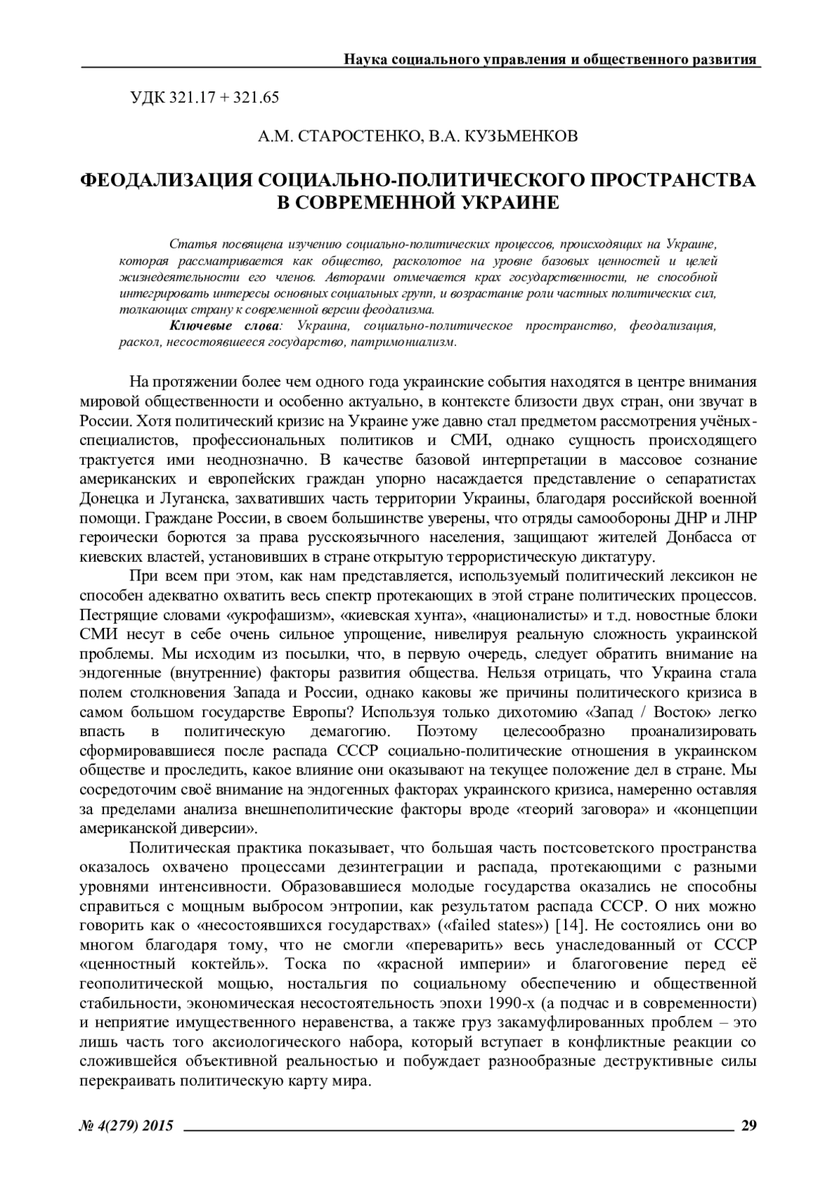 На протяжении более чем одного года украинские события находятся в центре внимания мировой общественности и особенно актуально, в контексте близости двух стран, они звучат в России. Хотя политический кризис на Украине уже давно стал предметом рассмотрения учѐныхспециалистов, профессиональных политиков и СМИ, однако сущность происходящего трактуется ими неоднозначно. В качестве базовой интерпретации в массовое сознание американских и европейских граждан упорно насаждается представление о сепаратистах Донецка и Луганска, захвативших часть территории Украины, благодаря российской военной помощи. Граждане России, в своем большинстве уверены, что отряды самообороны ДНР и ЛНР героически борются за права русскоязычного населения, защищают жителей Донбасса от киевских властей, установивших в стране открытую террористическую диктатуру