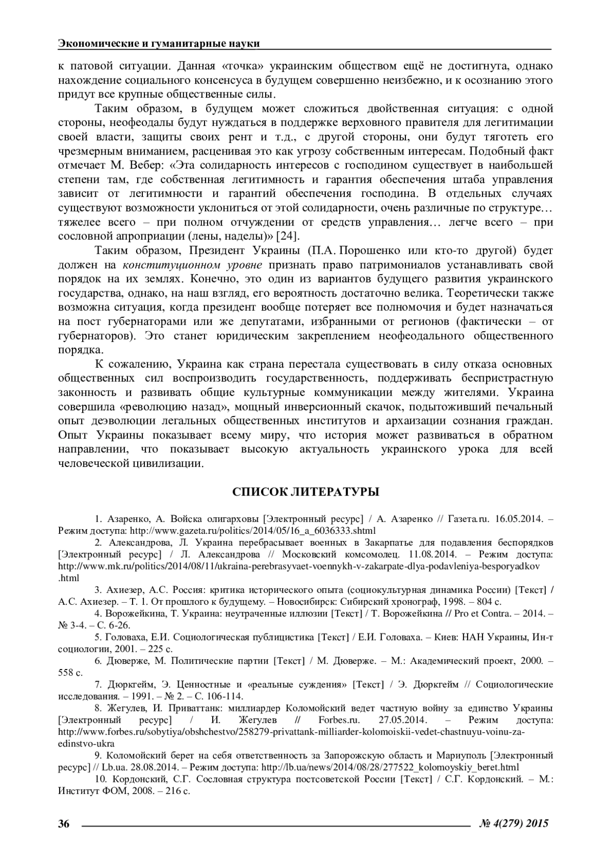 4. Ворожейкина, Т. Украина: неутраченные иллюзии [Текст] / Т. Ворожейкина // Pro et Contra. - 2014. - № 3-4. - С. 6-26.