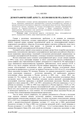 Говоря о различных экономических проблемах и их влиянии на социальнодемографические показатели, которые характеризуют уровень развития общества, нельзя обойти стороной вопрос влияния экономической среды на «демографический портрет» современного российского общества. В последнее время в научном сообществе очень часто можно слышать различные точки зрения – от лояльных до крайне радикальных – в отношении текущей демографической обстановки в России