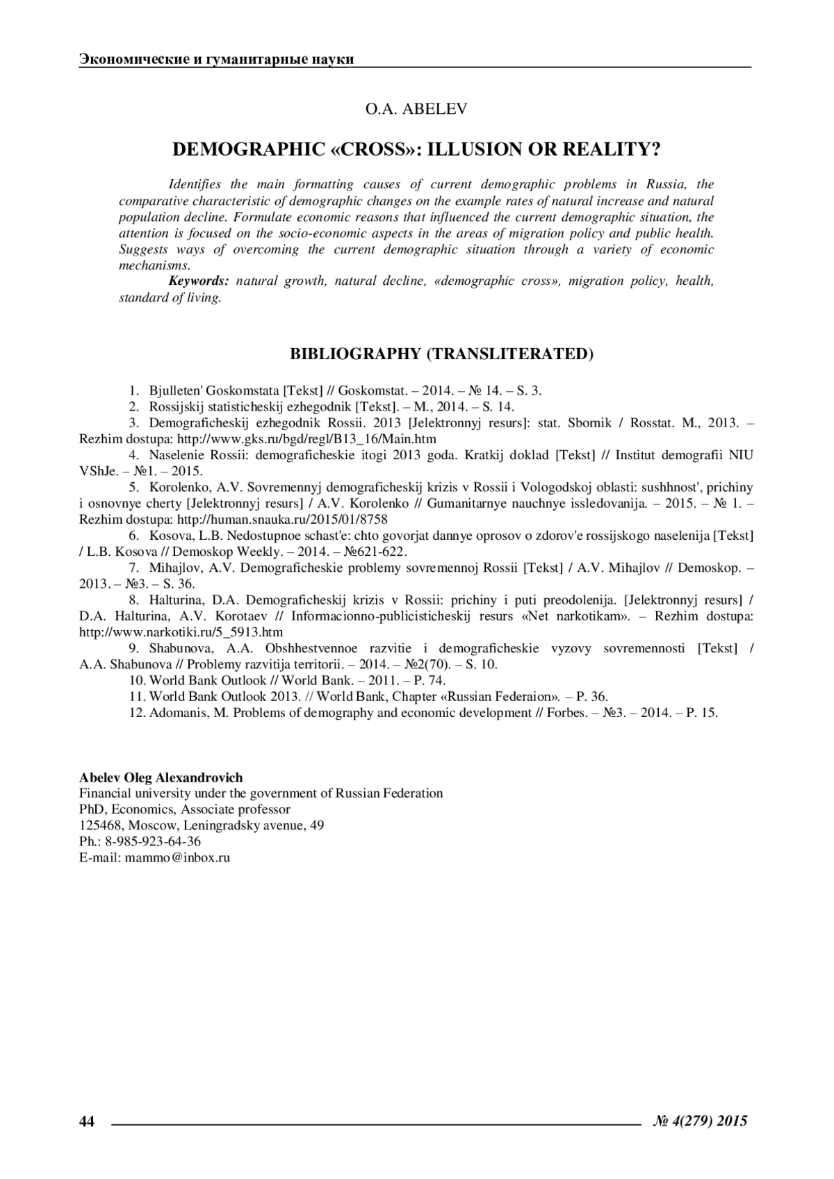 12. Adomanis, M. Problems of demography and economic development // Forbes. - №3. - 2014. - P. 15.