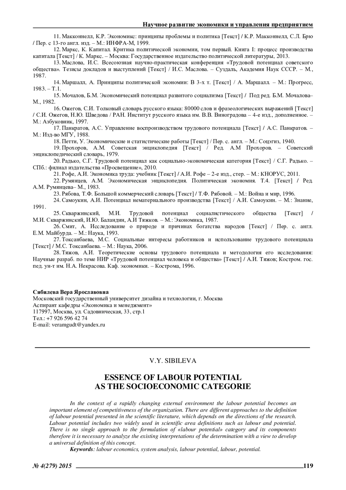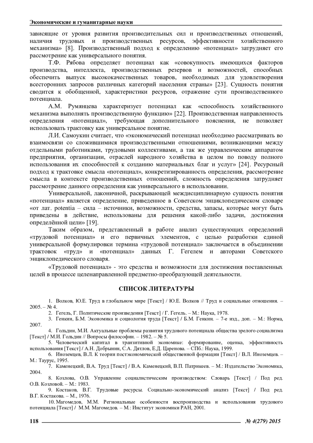 Статья: СУЩНОСТЬ ТРУДОВОГО ПОТЕНЦИАЛА КАК СОЦИАЛЬНО-ЭКОНОМИЧЕСКОЙ КАТЕГОРИИ (2015)