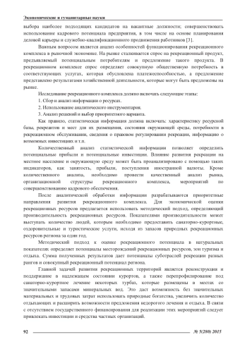 Одной из главных задач экономической трансформации Российской Федерации является эффективное использование природно-ресурсного и социально-экономического потенциала ее регионов. В этой связи особенно актуальными являются вопросы обеспечения развития рекреационной сферы как одной из рентабельных и быстроокупаемых
