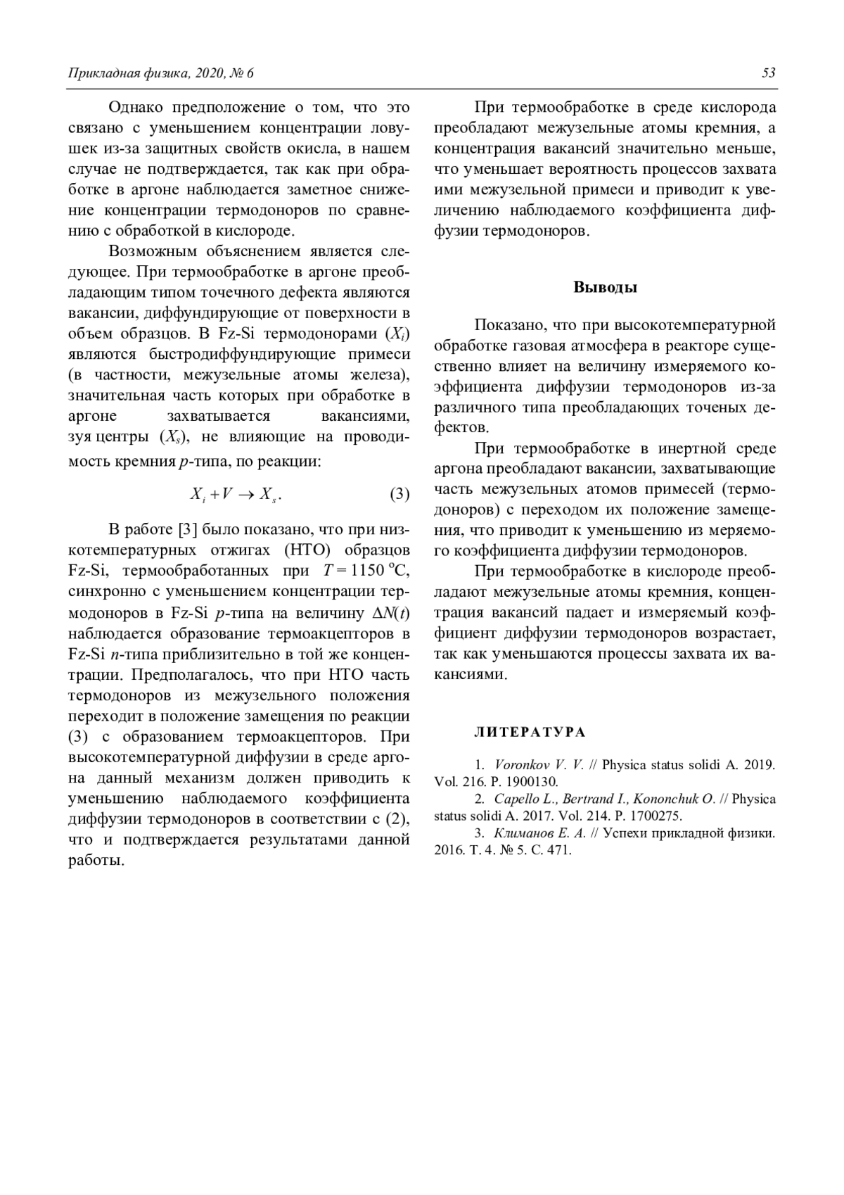 Климанов Е. А. Влияние газовой среды на диффузию термодоноров в кремнии 51