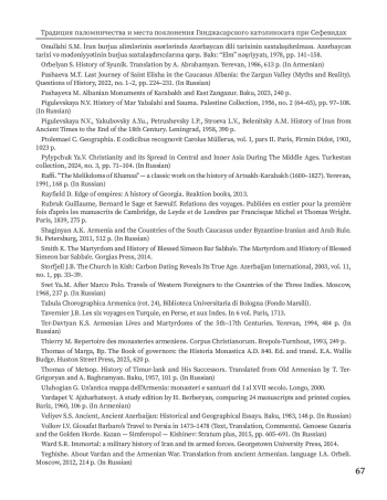 33. Пашаева М.Т. Последнее пристанище святого Елисея в Кавказской Албании: Заргунская долина (мифы и реальность) // Вопросы истории. 2022. № 1-2. С. 224-231.