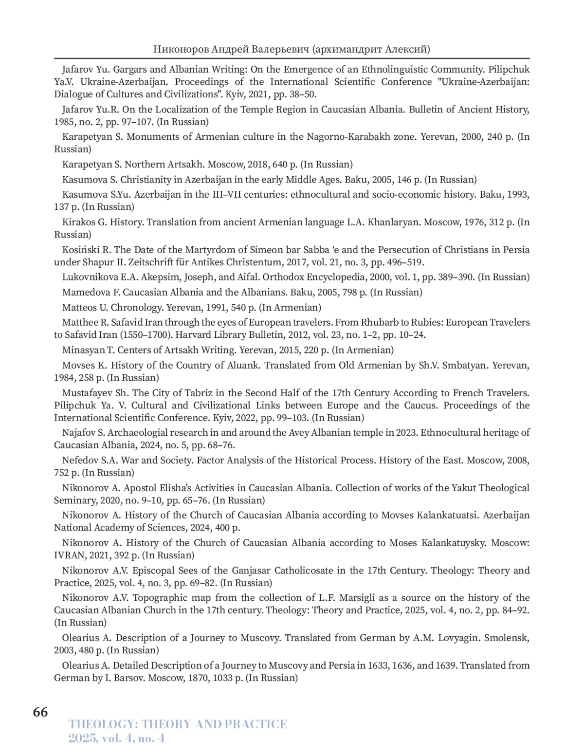 29. Никоноров А.В. Топографическая карта из коллекции Л.Ф. Марсильи как источник по истории Кавказской Албанской церкви в XVII веке // Теология: теория и практика. 2025. Т. 4. № 2. С. 84-92.
