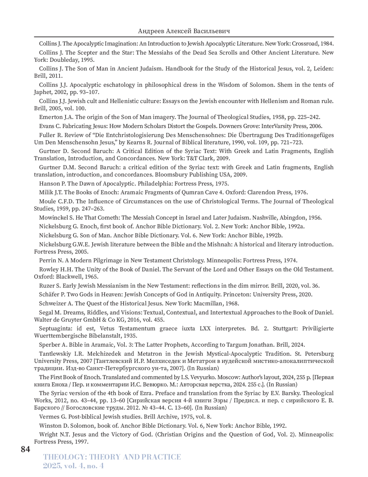 11. Collins J. The Son of Man in Ancient Judaism. Handbook for the Study of the Historical Jesus, vol. 2, Leiden: Brill, 2011.