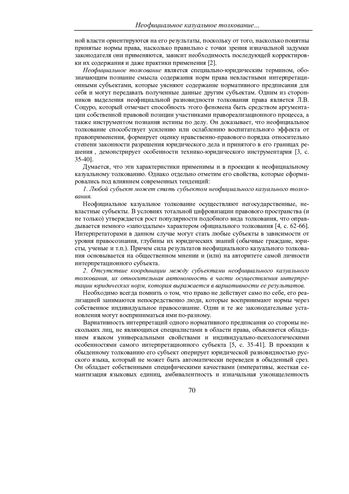 3. Соцуро Л.В. Неофициальное толкование норм российского права / Л.В. Соцуро. - М.: Изд-во Рос. ун-та дружбы народов, 1996. - С. 35-40.