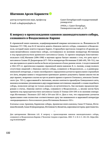 32. Шагинян А.К. Армяно-византийская церковная уния в эпоху Ираклидов (610-695 и 705-711) // Христианство на Ближнем Востоке. 2025. Т. 9. № 2. С. 43-58.