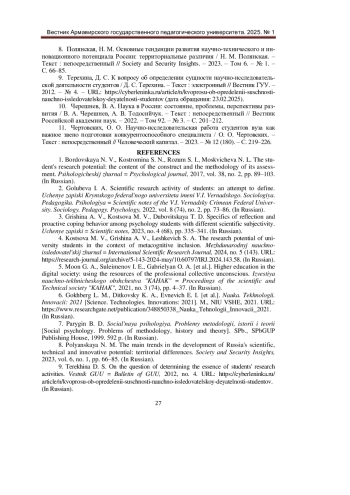 Статья: ИЗУЧЕНИЕ НАУЧНО-ИССЛЕДОВАТЕЛЬСКОГО ПОТЕНЦИАЛА СТУДЕНТОВ ПЕДАГОГИЧЕСКОГО ВУЗА (2025)
