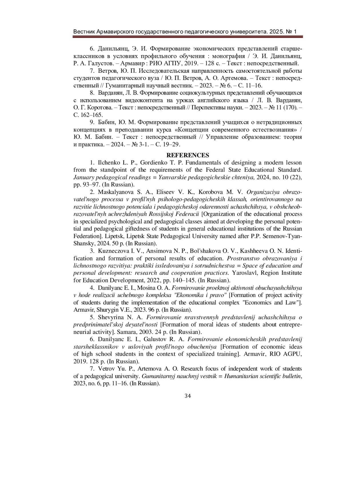 6. Данильянц, Э. И. Формирование экономических представлений старшеклассников в условиях профильного обучения: монография / Э. И. Данильянц, Р. А. Галустов. - Армавир: РИО АГПУ, 2019. - 128 с. - Текст: непосредственный. EDN: UQYPIL