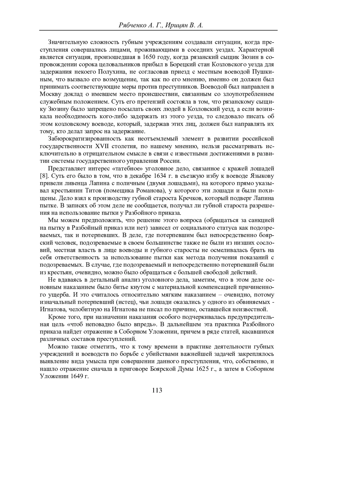 6. Рябченко А.Г., Гиш М.Р. Уголовно-правовое регулирование составов преступлений против государства и ответственности за их совершение в самодержавной России 17 в. / А.Г. Рябченко, М.Р. Гиш. - Текст: непосредственный // Вестник Краснодарского университета МВД России. 2012. - № 1 (15). - С. 22-26. EDN: PWZIKT