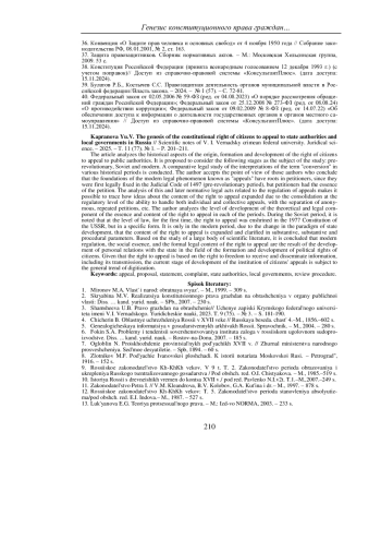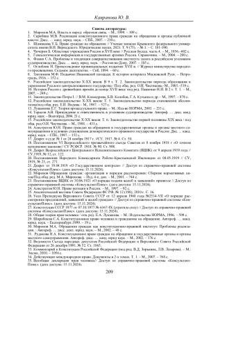2. Скрябина М.В. Реализация конституционного права граждан на обращения в органы публичной власти: Дисс.. канд. юрид. наук. - СПб., 2007. - 230 с. EDN: NOTDRX