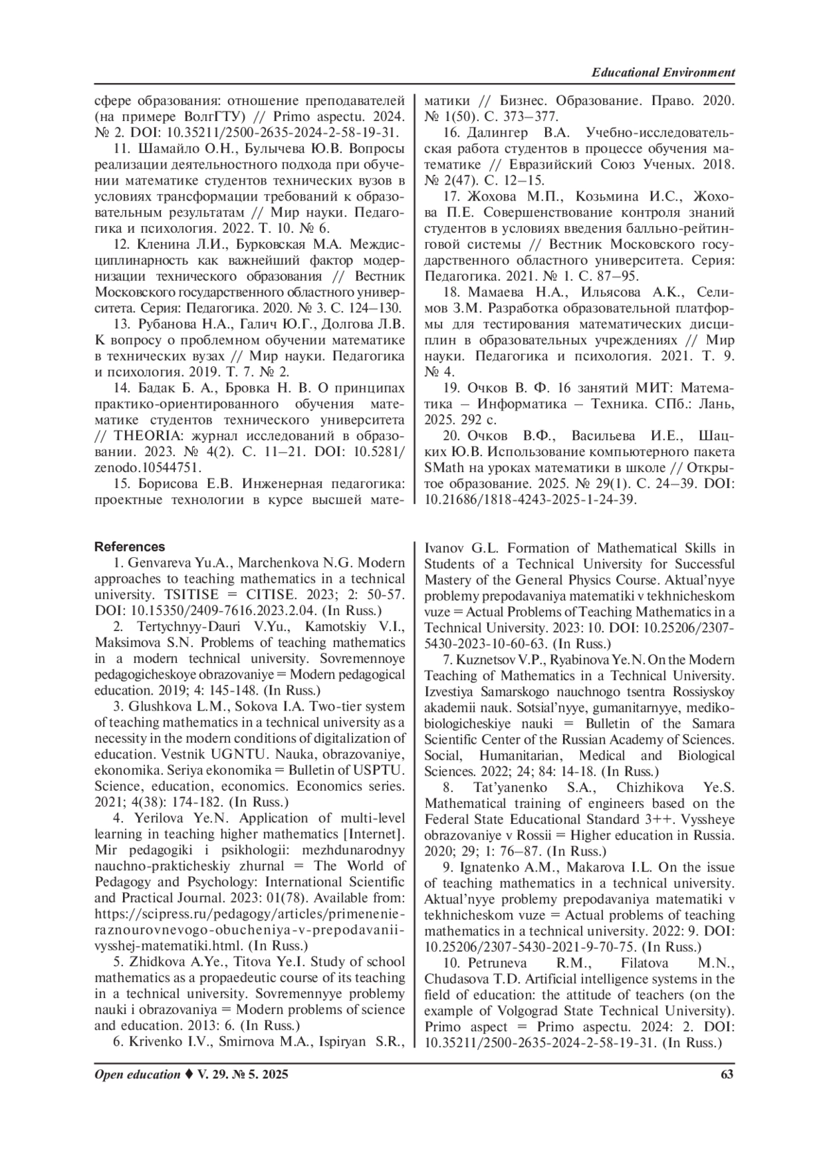 Заключение. Рассмотренный в статье образовательный подход МИТ позволяет широко использовать современные информационные и цифровые технологии для изучения высшей математики в вузах. Данный подход ведет к повышению интереса студентов к изучаемым дисциплинам, формирует навыки использования языка программирования Python и пакета прикладных математических программ Smath Studio для аналитического и численного решения сложных математических задач.