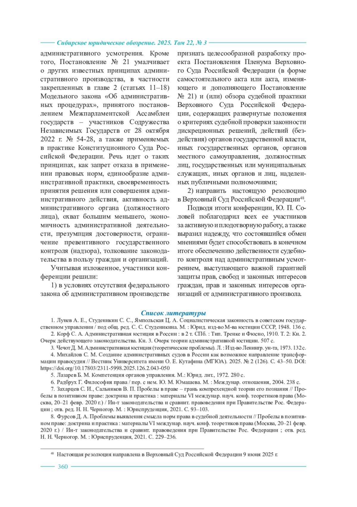 4. Михайлов С. М. Создание административных судов в России как возможное направление трансформации правосудия // Вестник Университета имени О. Е. Кутафина (МГЮА). 2025. № 2 (126). С. 43-50. https://doi.org/10.17803/2311-5998.2025.126.2.043-050