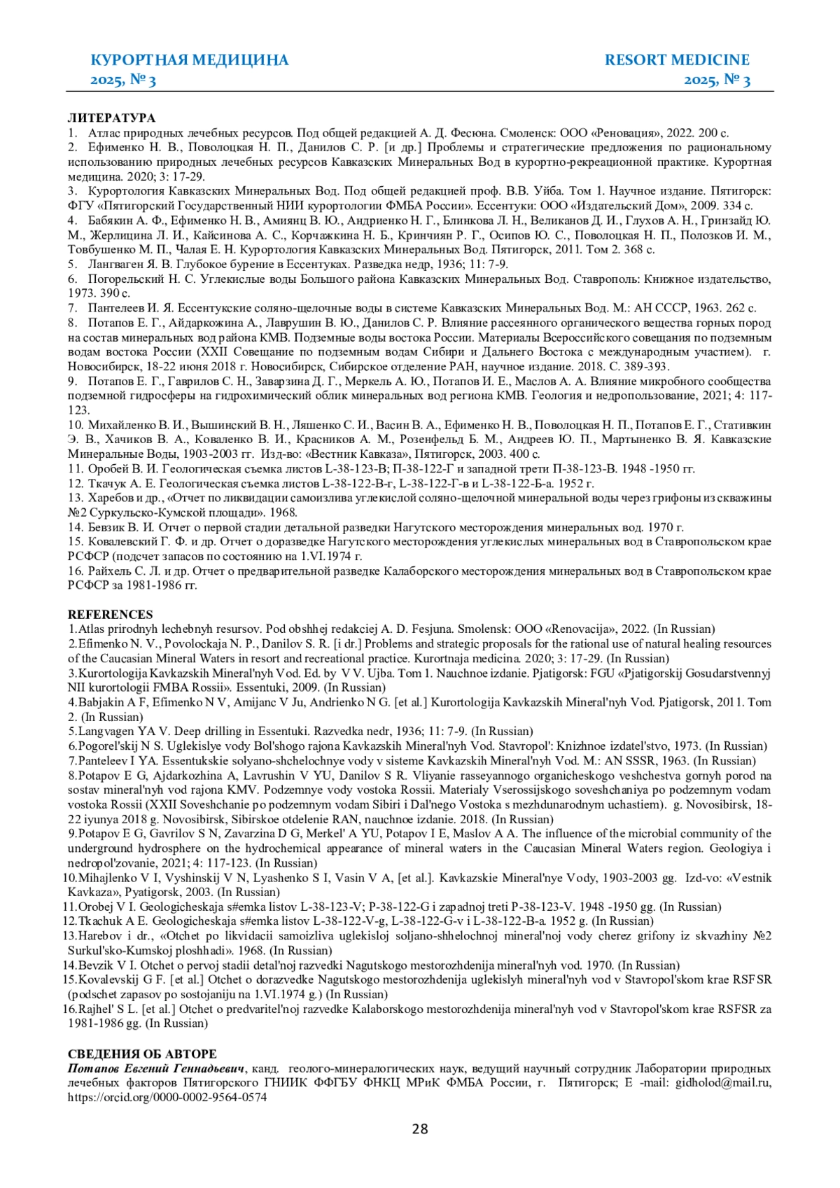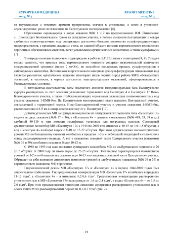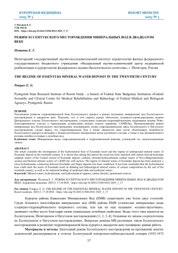 ПОТАПОВ Е. Г. РЕЖИМ ЕССЕНТУКСКОГО МЕСТОРОЖДЕНИЯ МИНЕРАЛЬНЫХ ВОД В ДВАДЦАТОМ ВЕКЕ // КУРОРТНАЯ МЕДИЦИНА. 2025. № 3