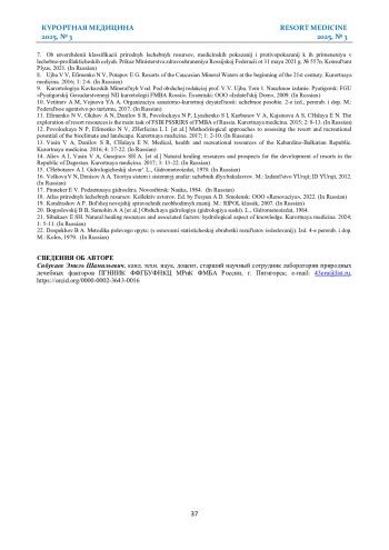 21. Сибукаев Э. Ш. Природные лечебные ресурсы и сопутствующие факторы: гидрологический аспект познания. Курортная медицина. 2024; 1: 5-11.