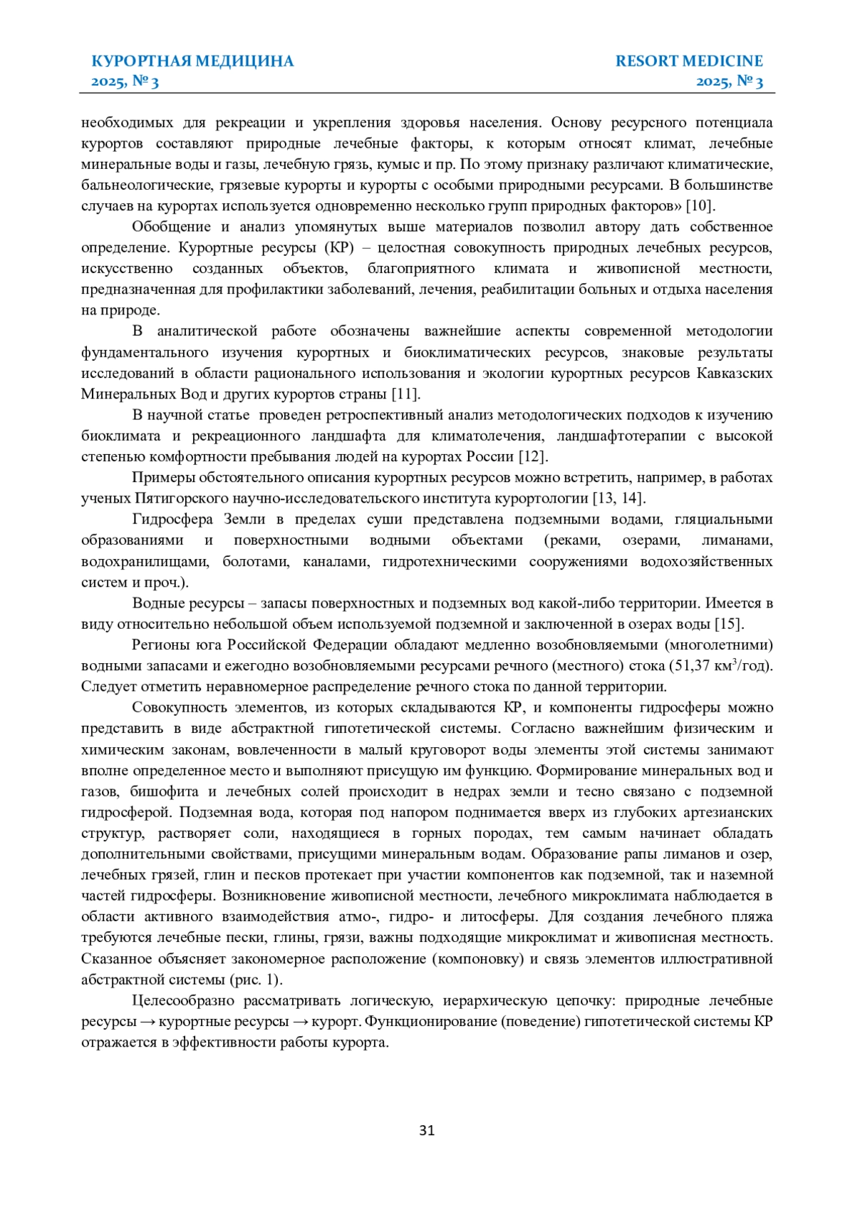 1. Разумов А. Н. Методологические и научные основы курортологии на современном этапе развития науки. Курортная медицина. 2020; 4: 5-12.