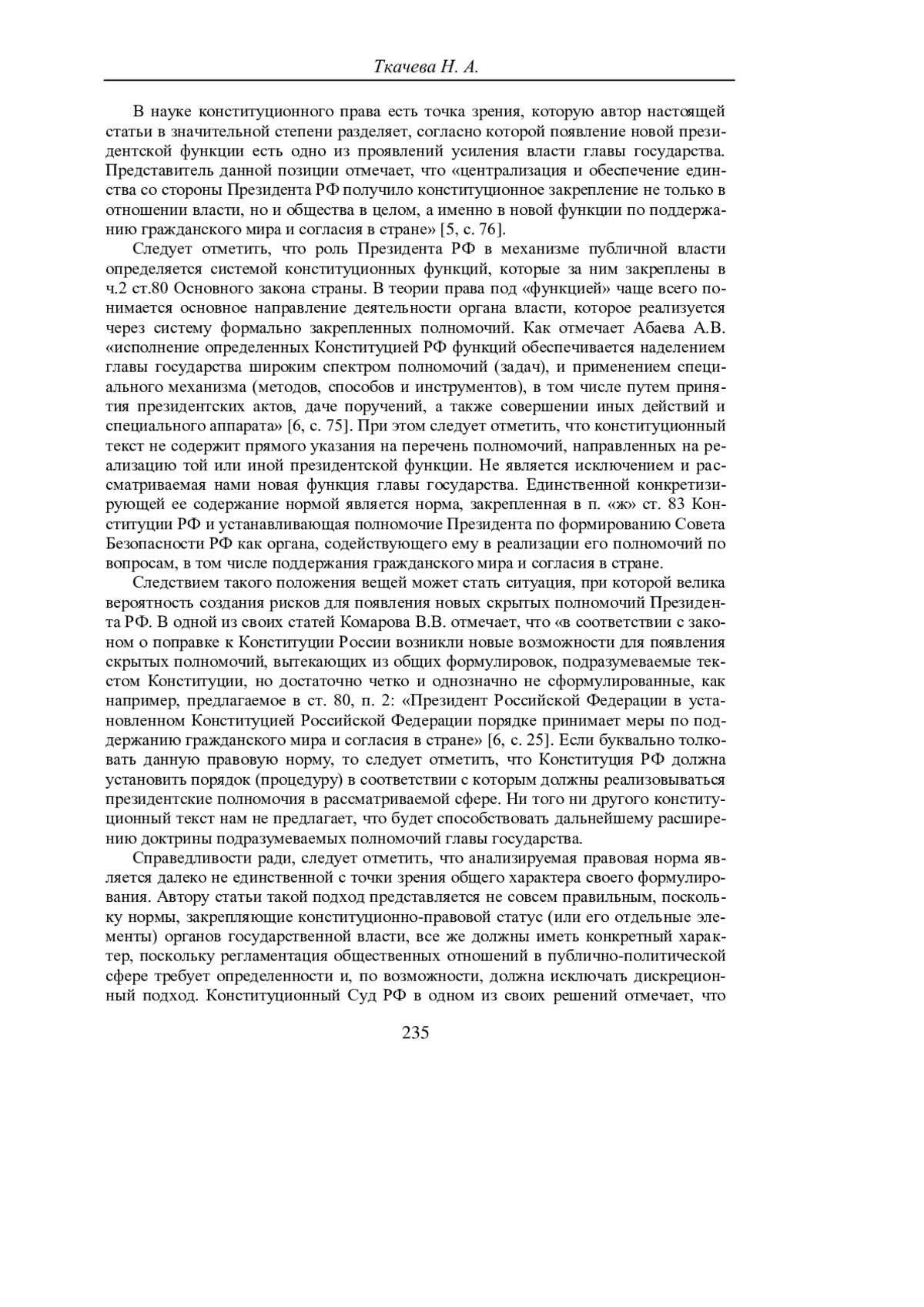 5. Абаева, А. В. Место Президента РФ в конституционной системе публичной власти (в свете конституционной реформы 2020 года) / А. В. Абаева // Известия Саратовского университета. Новая серия. Серия: Экономика. Управление. Право. - 2022. - Т. 22, вып. 1. - С. 72-77.