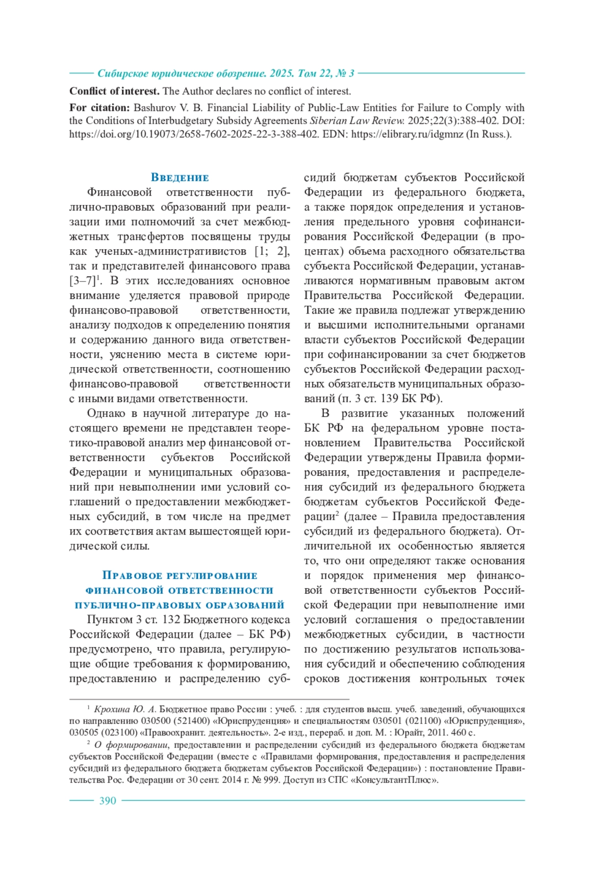 4. Конюхова Т. В. Об ответственности за нарушение бюджетного законодательства // Журнал российского права. 2010. № 4 (160). С. 37-48.