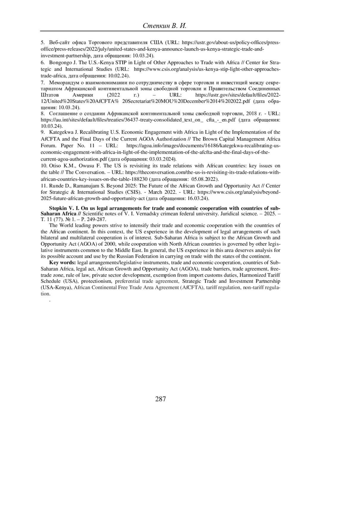 6. Bongongo J. The U.S.-Kenya STIP in Light of Other Approaches to Trade with Africa // Center for Strategic and International Studies (URL: https://www.csis.org/analysis/us-kenya-stip-light-other-approaches-trade-africa, дата обращения: 10.02.24).
