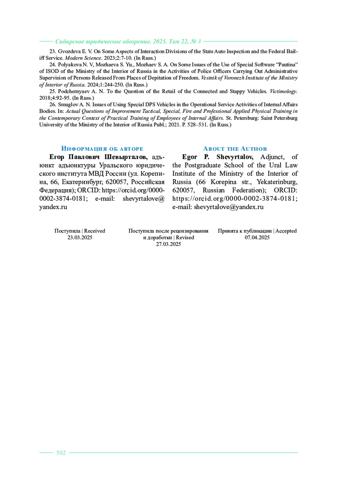 Автор (ы): ШЕВЫРТАЛОВ ЕГОР ПАВЛОВИЧ
