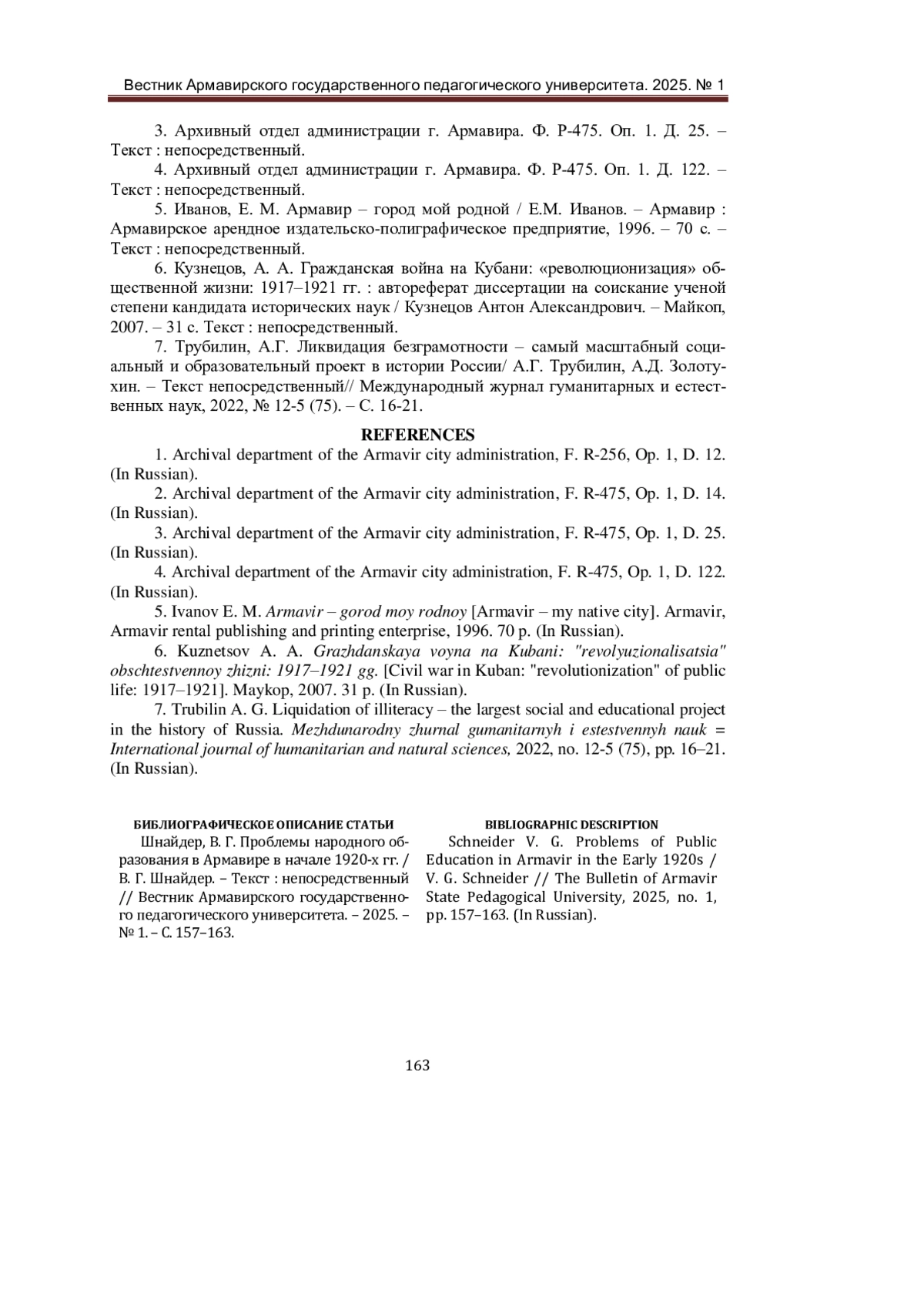 3. Архивный отдел администрации г. Армавира. Ф. Р-475. Оп. 1. Д. 25. - Текст: непосредственный.