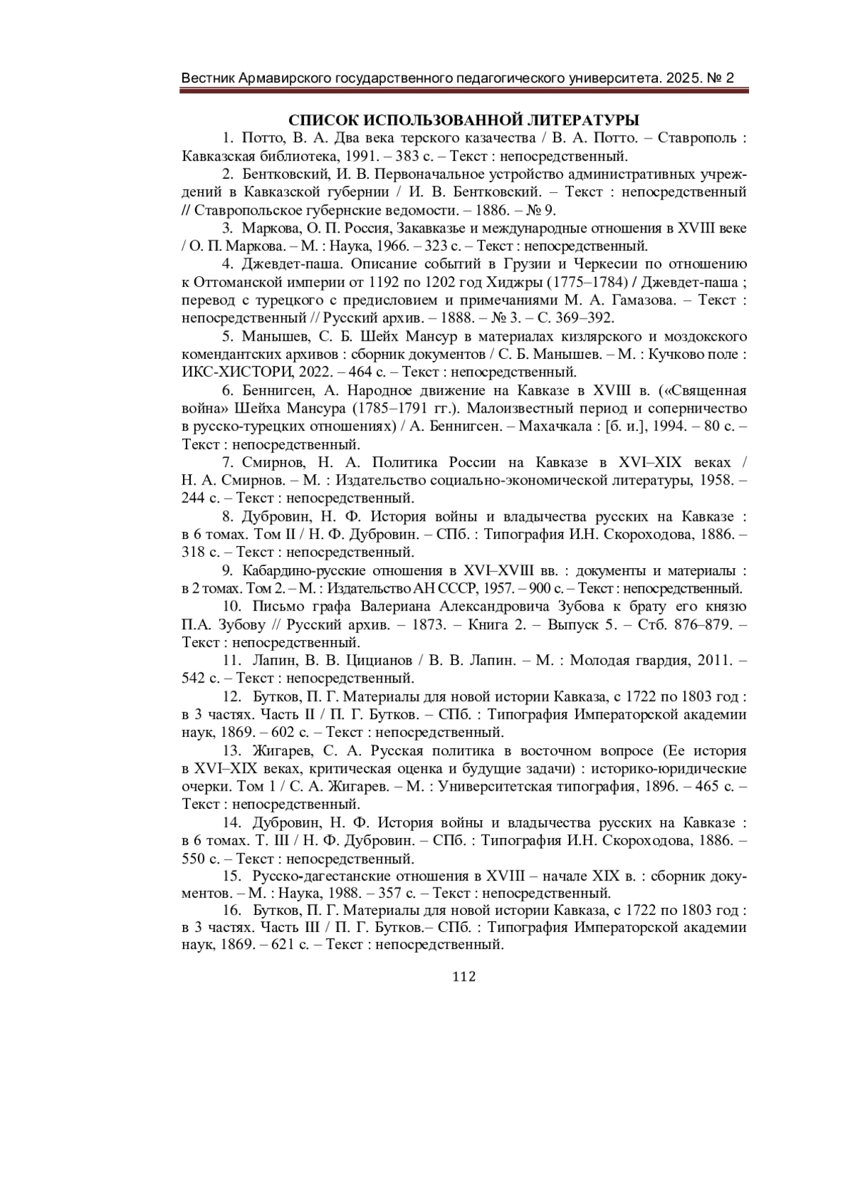 3. Маркова, О. П. Россия, Закавказье и международные отношения в XVIII веке / О. П. Маркова. - М.: Наука, 1966. - 323 с. - Текст: непосредственный.