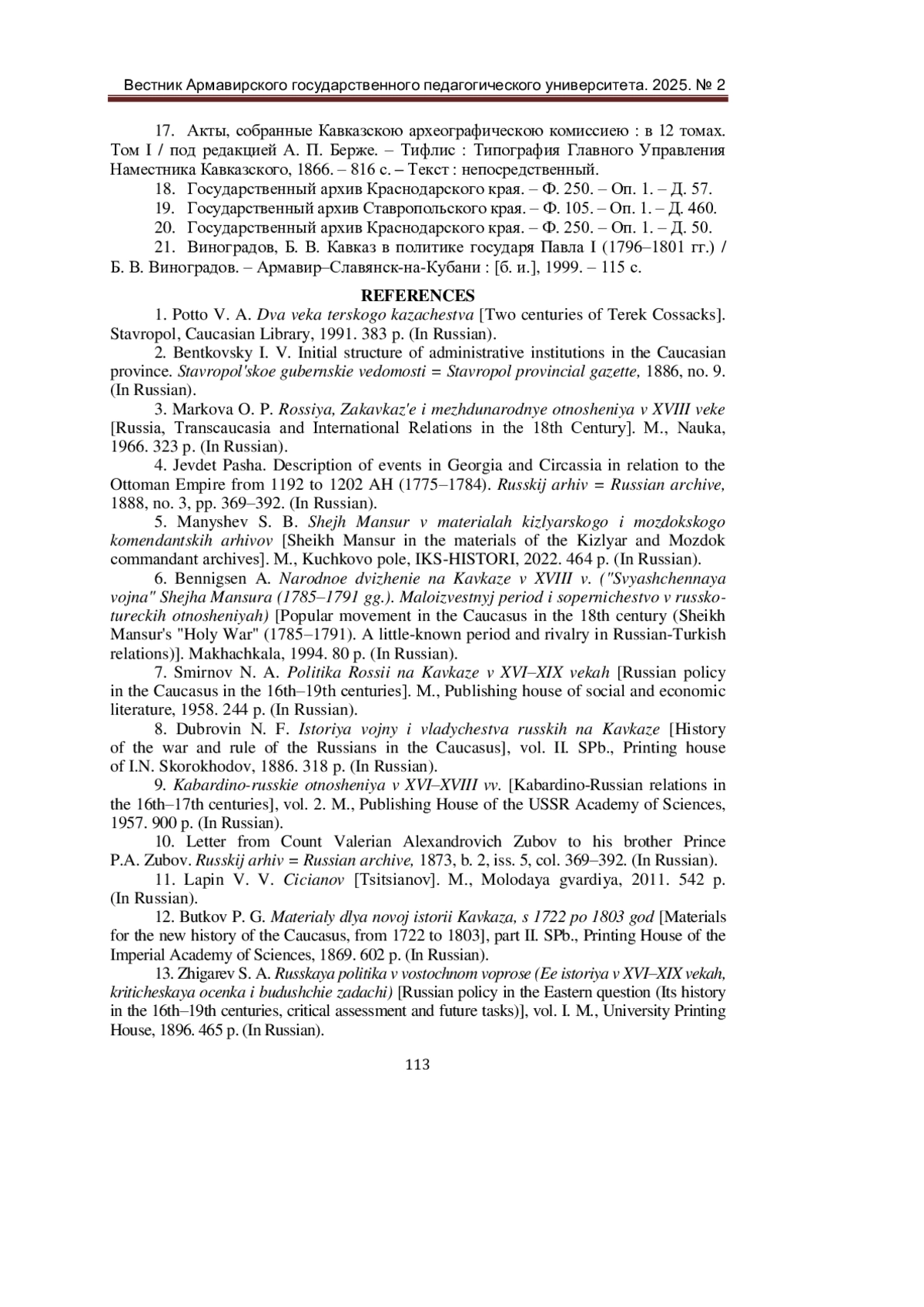 21. Виноградов, Б. В. Кавказ в политике государя Павла I (1796-1801 гг.) / Б. В. Виноградов. - Армавир-Славянск-на-Кубани: [б. и.], 1999. - 115 с.