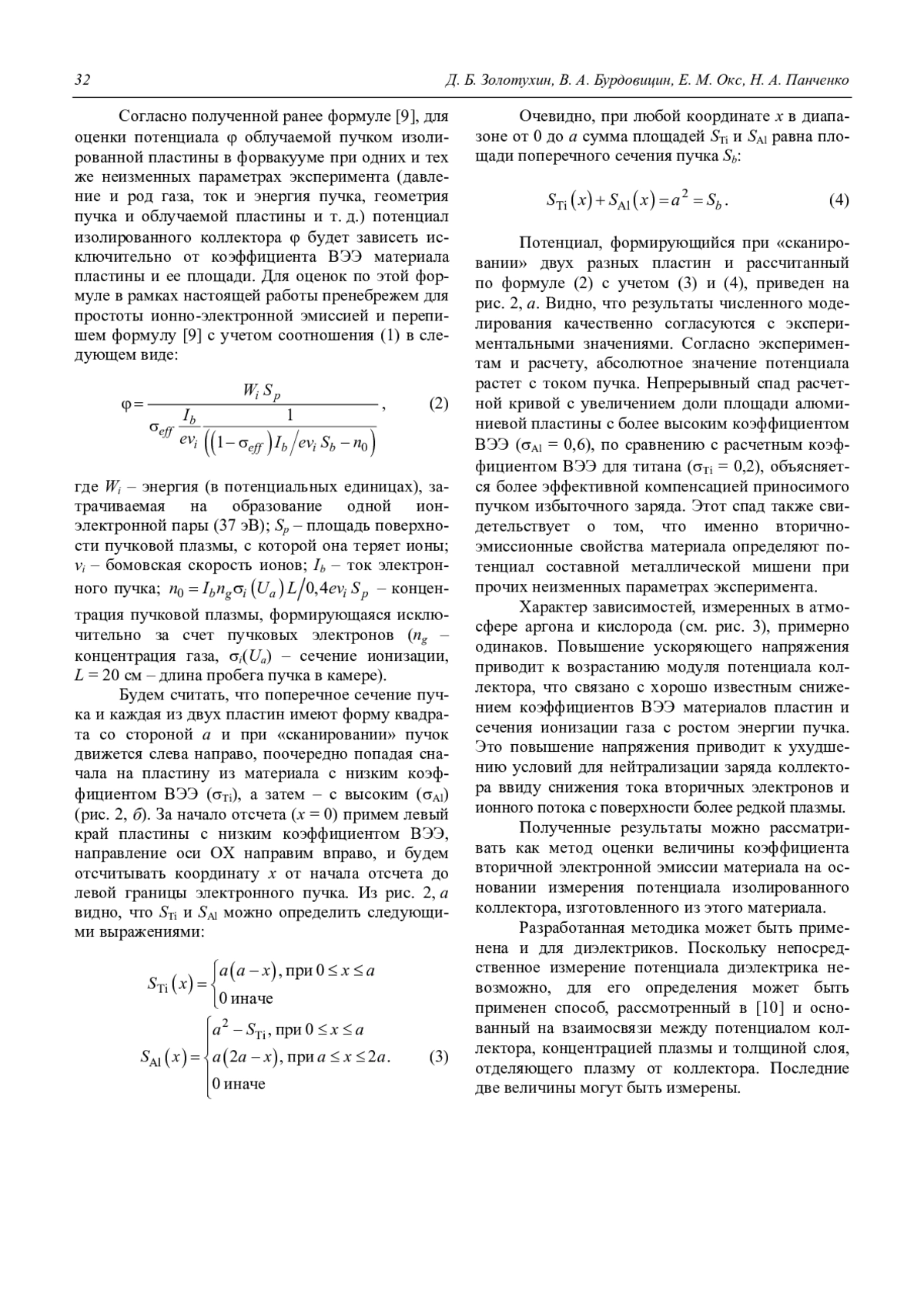 Золотухин Д. Б., Бурдовицин В. А., Окс Е. М., Панченко Н. А. Потенциал составной металлической мишени при её облучении электронным пучком в форвакуум-ной области давлений 30
