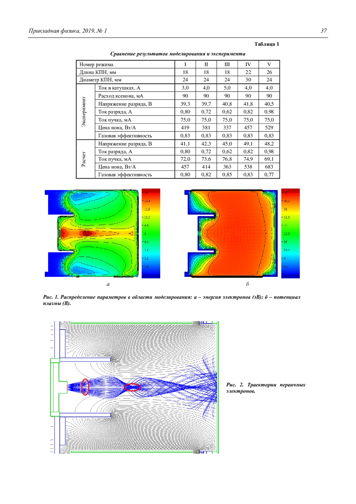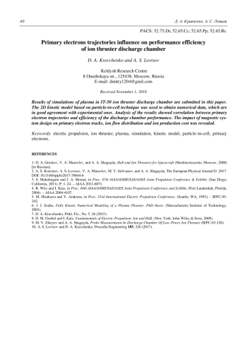 Статья: Влияние траекторий первичных электронов на эффективность работы газоразрядной камеры ионного двигателя (2019)