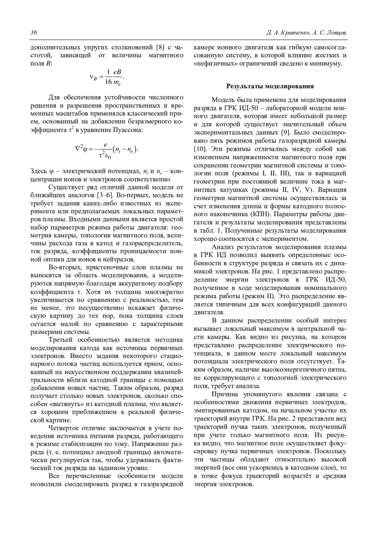 КРАВЧЕНКО Д. А., ЛОВЦОВ А. С. ВЛИЯНИЕ ТРАЕКТОРИЙ ПЕРВИЧНЫХ ЭЛЕКТРОНОВ НА ЭФФЕКТИВНОСТЬ РАБОТЫ ГАЗОРАЗРЯДНОЙ КАМЕРЫ ИОННОГО ДВИГАТЕЛЯ // ПРИКЛАДНАЯ ФИЗИКА. 2019. №1