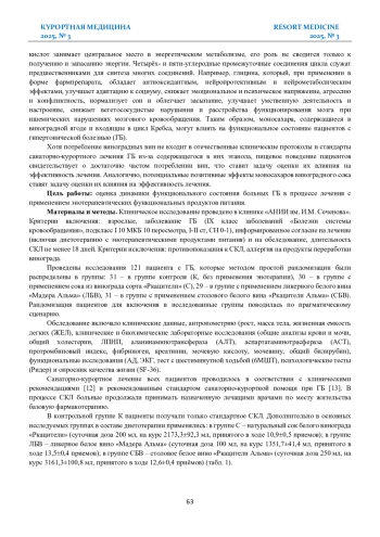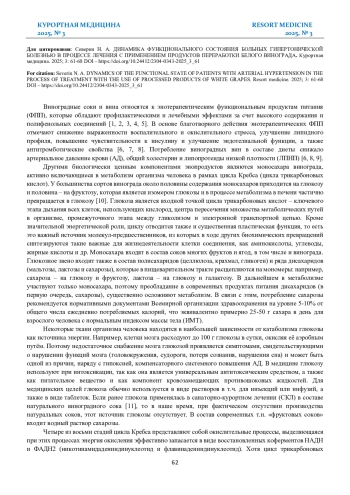 Выводы. Виноградный сок рекомендуется включить в состав диетотерапии пациентов с ГБ и в нормативные документы по лечению данной патологии.