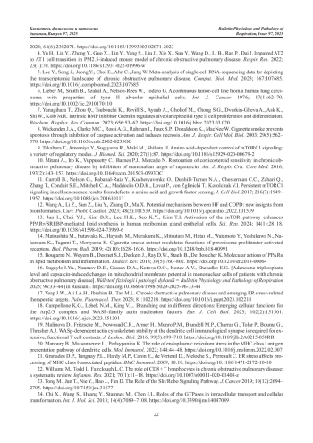 17. Yeap J.W., Ali I.A.H., Ibrahim B., Tan M.L. Chronic obstructive pulmonary disease and emerging ER stress-related therapeutic targets // Pulm. Pharmacol. Ther. 2023. Vol.81. Article number: 102218. DOI: 10.1016/j.pupt.2023.102218