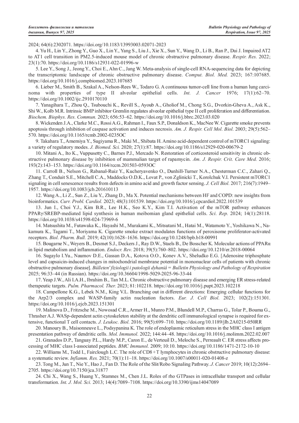 22. Williams M., Todd I., Fairclough L.C. The role of CD8 + T lymphocytes in chronic obstructive pulmonary disease: a systematic review // Inflamm. Res. 2021. Vol.70, Iss.1. P.11-18. DOI: 10.1007/s00011-020-01408-z
