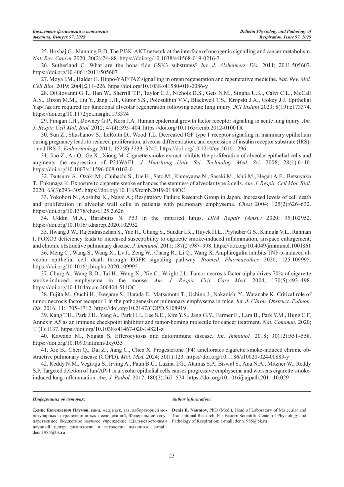 34. Uddin M.A., Barabutis N. P53 in the impaired lungs // DNA Repair (Amst). 2020. Vol.95. Article number: 102952. DOI: 10.1016/j.dnarep.2020.102952