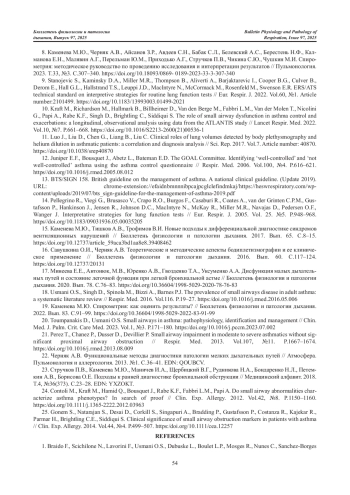 20. Toumpanakis D., Usmani O.S. Small airways in asthma: pathophysiology, identification and management // Chin. Med. J. Pulm. Crit. Care Med. 2023. Vol.1, №3. P.171-180. https:/. DOI: 10.1016/j.pccm.2023.07.002
