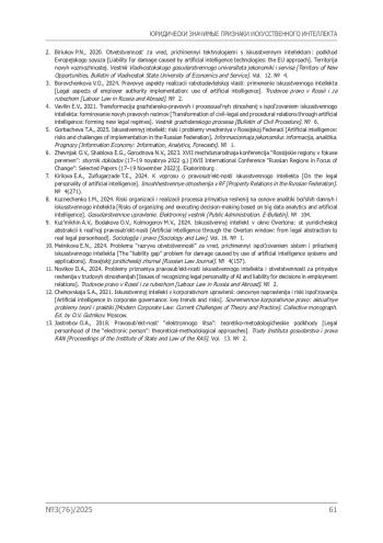 11. Новиков Д.А. Проблемы признания правосубъектности искусственного интеллекта и ответственности за принятые решения в трудовых отношениях // Трудовое право в России и за рубежом. 2024. № 2.