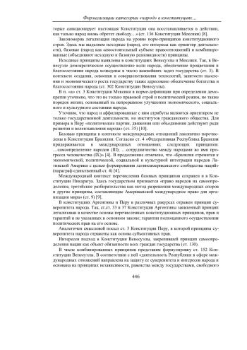 В данной статье на основе сравнительно-правового метода осуществлен анализ текстов конституцией стран Латинской Америки с целью выявления в них норм, формализующих народ как субъект правоотношений. К числу полученных результатов исследования отнесен тезис о: легализации народа в пространственном и национальном измерениях в различных частях конституций, начиная от общих принципов организации государства, до внесения конституционных изменений. Многочисленны нормы-принципы в исходной, базовой и комбинированной разновидностях, адресованных народу. Установлено, что принцип народовластия опосредует конкретизирующие конституционные нормы, связанные с представителями народа во власти. При этом, конституционные полномочия различных властных структур сопряжены не только с интересами народа, но и с конкретными действиями, предполагающими участие народа. Исключительность народа, как конституционного субъекта правоотношений подчеркивается легализацией отдельных элементов его правового статуса, включая государственное гарантирование субъективных прав.
