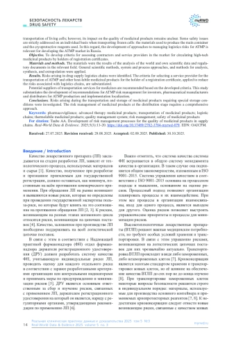 Статья: Разработка процессов управления рисками для качества лекарственных препаратов в логистических цепочках (2025)