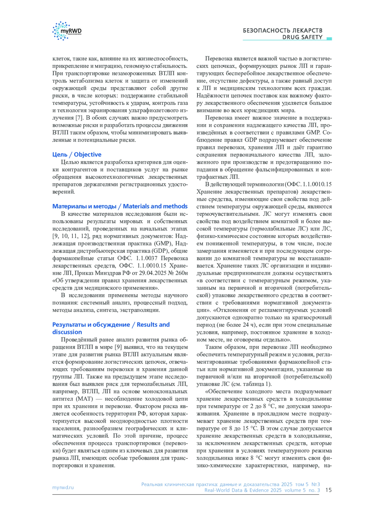 Ключевые фразы: ФАРМАКОНАДЗОР, высокотехнологичные лекарственные препараты, транспортировка лекарственных препаратов, ЛОГИСТИЧЕСКИЕ ЦЕПОЧКИ, термолабильные лекарственные препараты, СИСТЕМА МЕНЕДЖМЕНТА КАЧЕСТВА, управление рисками, безопасность лекарственных средств