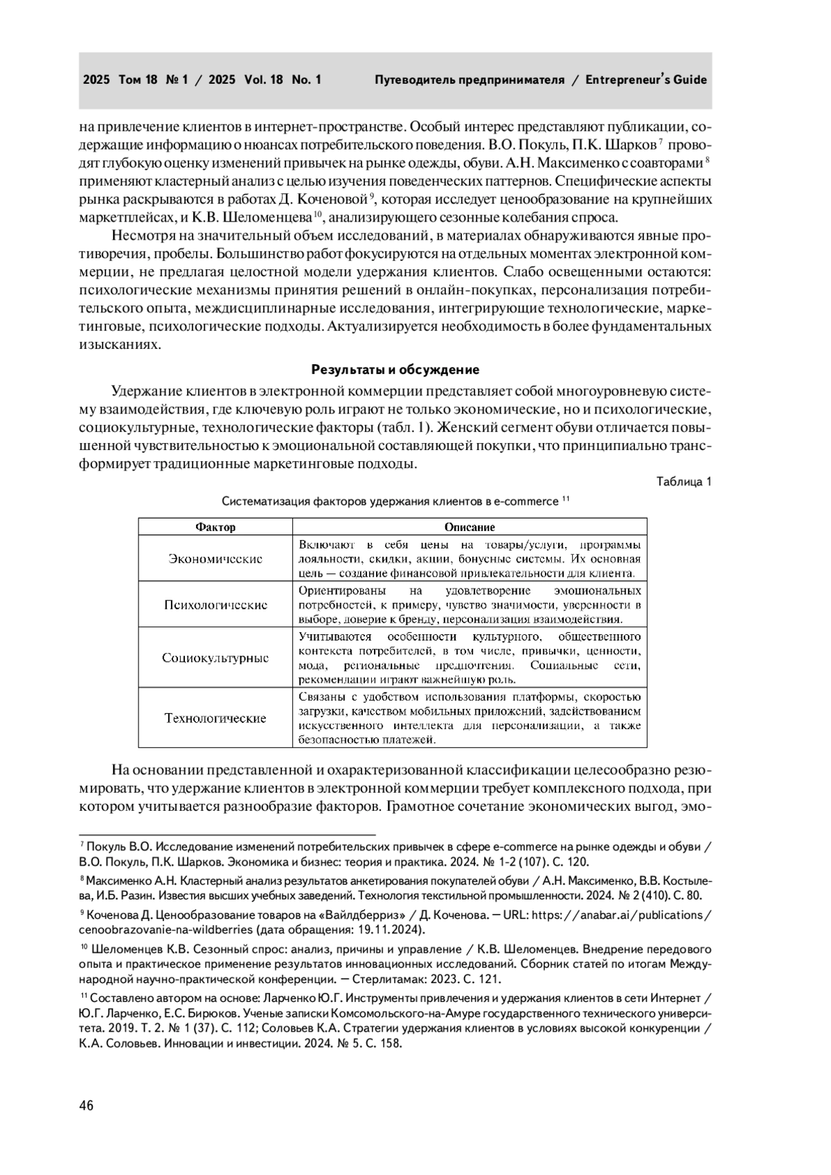 Статья: Анализ факторов удержания клиентов в сегменте женской обуви на платформах электронной коммерции (2025)