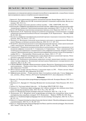 1. Буянов А.С. Роль маркетплейсов в развитии электронной торговли. Human Progress. 2022. Т. 8, № 3. С. 5.