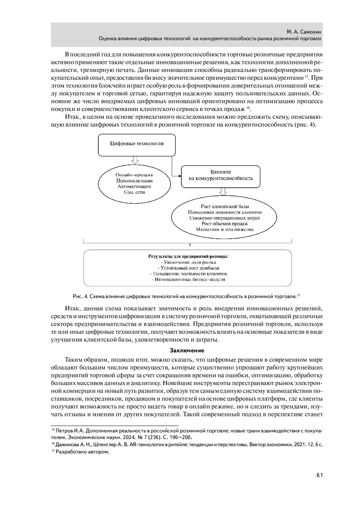 Целью статьи является проведение комплексной оценки влияния цифровых технологий на конкурентоспособность рынка розничной торговли.