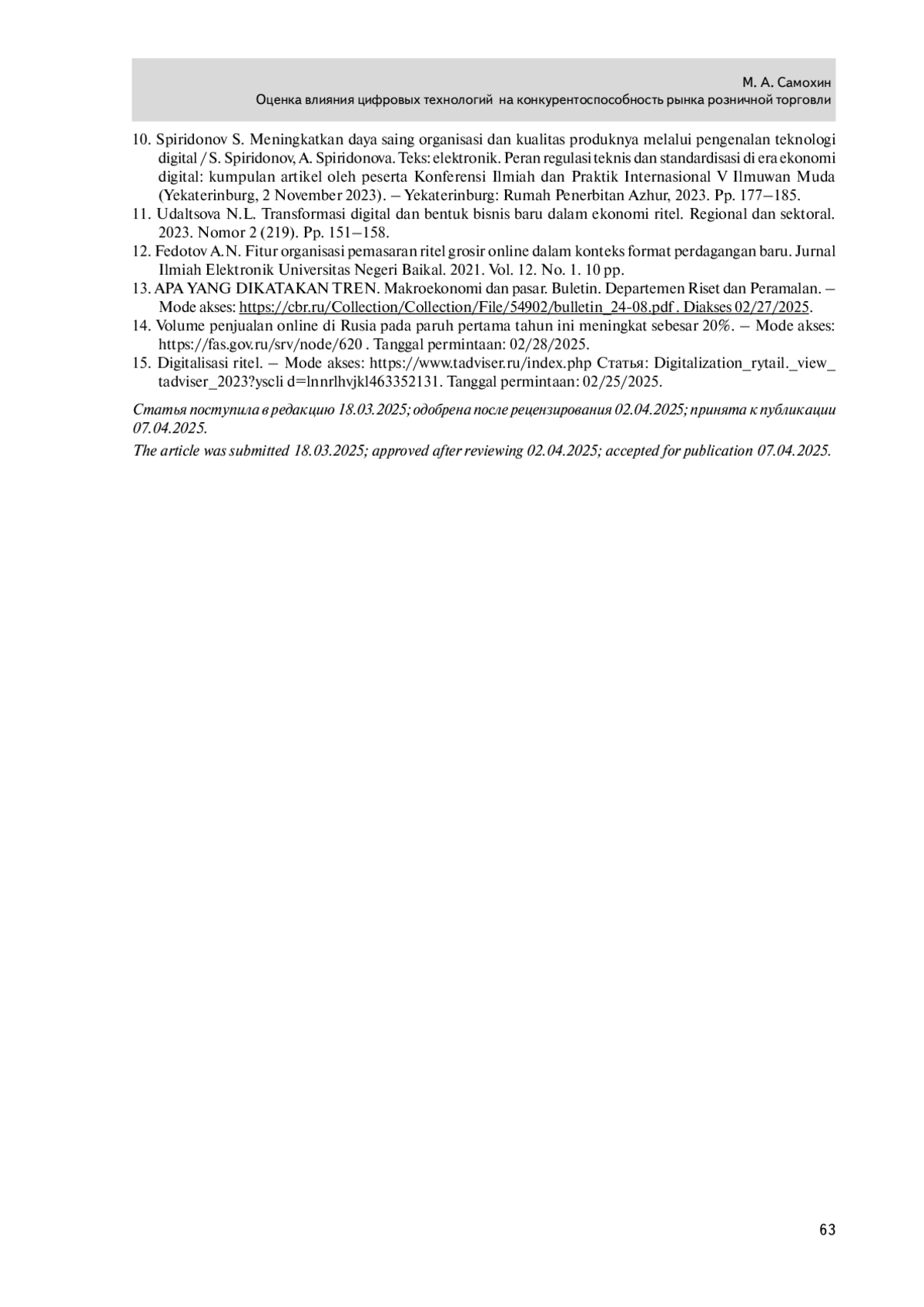 15. Цифровизация ритейла. - Режим доступа: https://www.tadviser.ru/index.php. Статья: Цифровизация_ ритейла._Обзор_TAdviser_2023?ysclid=lnnrlhvjkl463352131. Дата обращения: 25. 02. 2025.