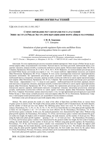 ЗАЦЕПИНА И. В. СТИМУЛИРОВАНИЕ РЕГУЛЯТОРАМИ РОСТА РАСТЕНИЙ ЭПИН-ЭКСТРА И РИБАВ-ЭКСТРА ПРИ ВЫРАЩИВАНИИ ФОРМ АЙВЫ В МАТОЧНИКЕ // РАЗНООБРАЗИЕ РАСТИТЕЛЬНОГО МИРА. 2025. № 3 (26)