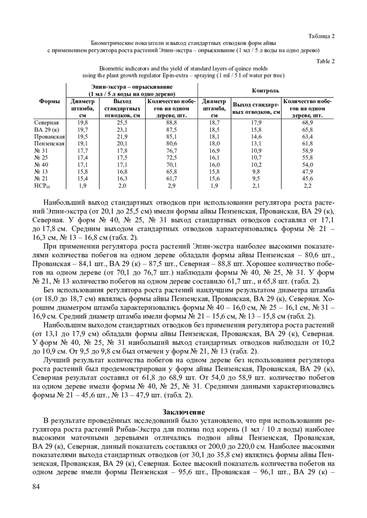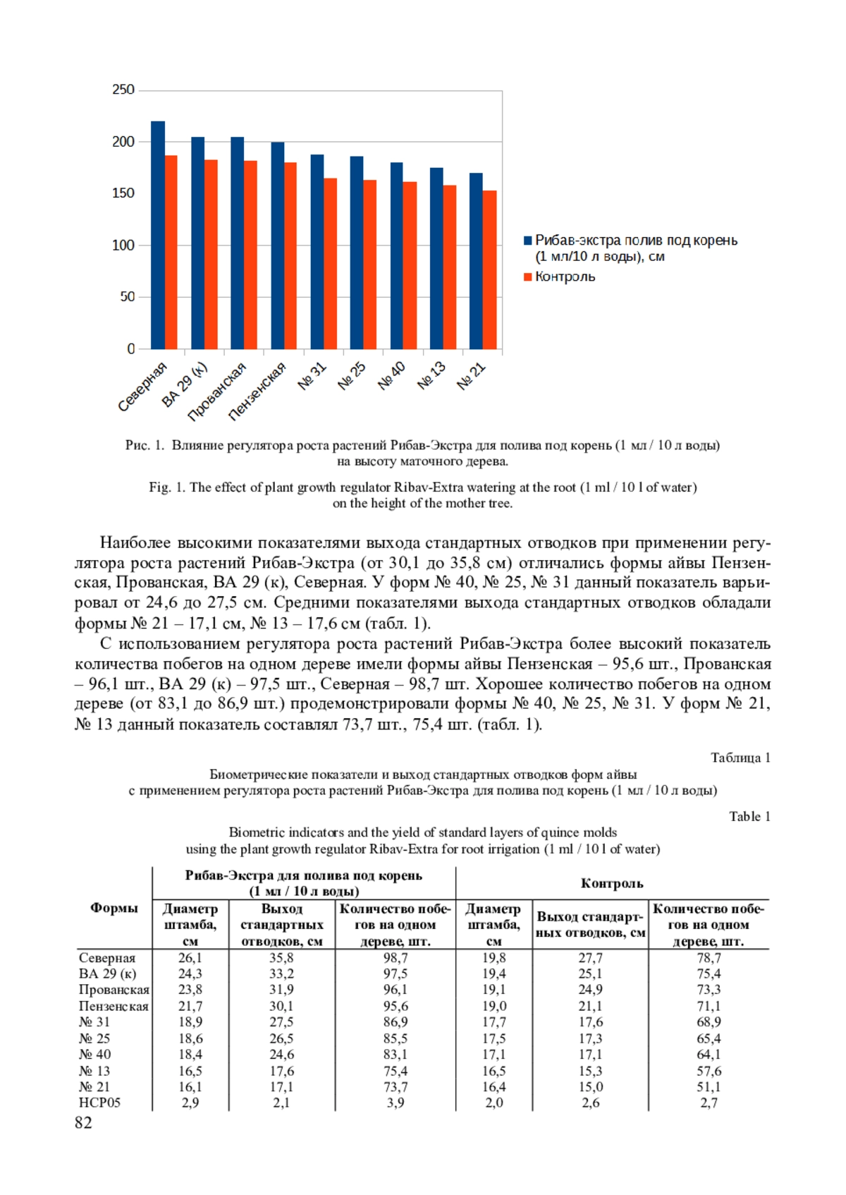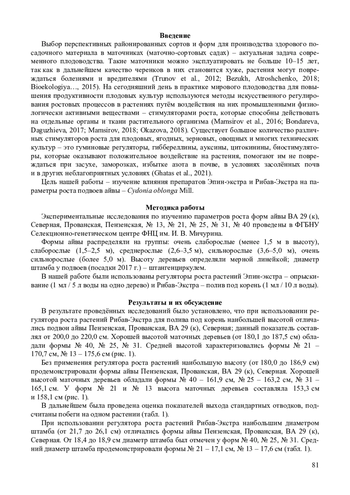 Статья: СТИМУЛИРОВАНИЕ РЕГУЛЯТОРАМИ РОСТА РАСТЕНИЙ ЭПИН-ЭКСТРА И РИБАВ-ЭКСТРА ПРИ ВЫРАЩИВАНИИ ФОРМ АЙВЫ В МАТОЧНИКЕ (2025)