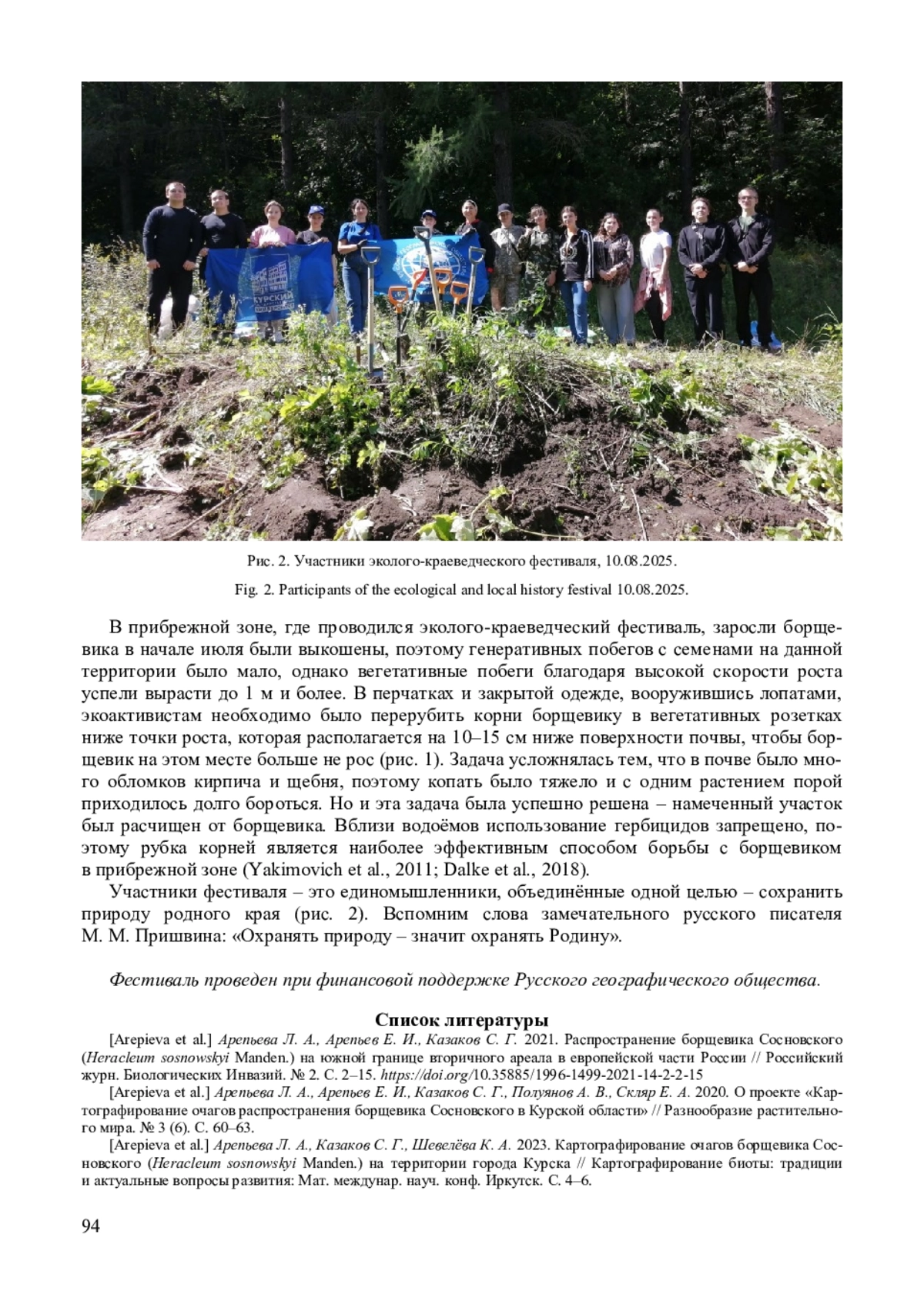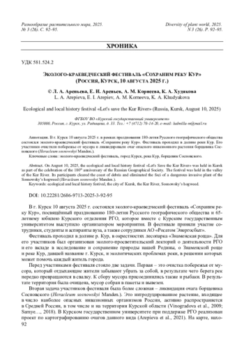 АРЕПЬЕВА Л. А., АРЕПЬЕВ Е. И., КОРНЕЕВА А. М., ХУДЯКОВА К. А. ЭКОЛОГО-КРАЕВЕДЧЕСКИЙ ФЕСТИВАЛЬ «СОХРАНИМ РЕКУ КУР» (РОССИЯ, КУРСК, 10 АВГУСТА 2025 Г.) // РАЗНООБРАЗИЕ РАСТИТЕЛЬНОГО МИРА. 2025. № 3 (26)