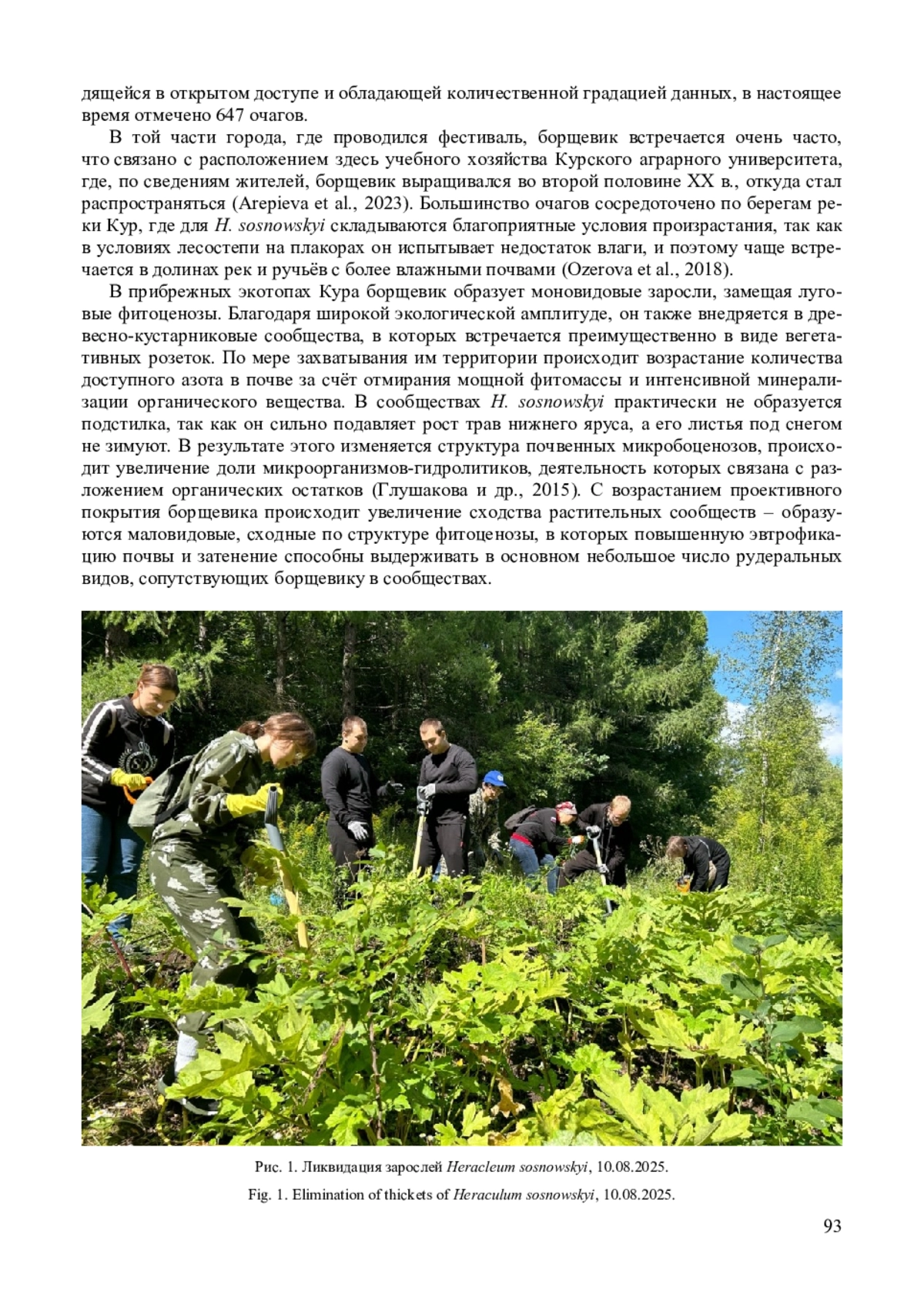 В г. Курск 10 августа 2025 г. в рамках празднования 180-летия Русского географического общества состоялся эколого-краеведческий фестиваль «Сохраним реку Кур». Фестиваль проходил в долине реки Кур. Его участники очистили побережье от мусора и ликвидировали очаг опасного инвазионного растения борщевика Сосновского (Heracleum sosnowskyi Manden.).
